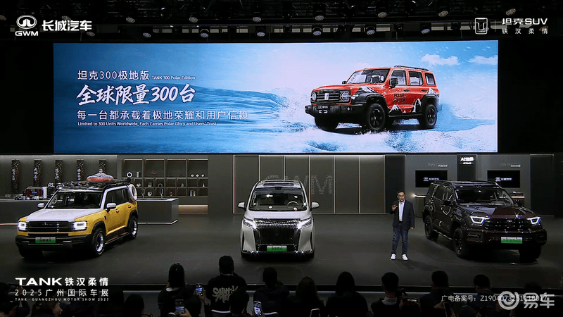 易车讯 在11月21日开幕的2025广州车展上,极地版正式亮相并同步开启预订,全球限量300台,将于12月上旬正式上市。该车由坦克品牌与用户共创,搭载辨识度极高的专属拉花,并围绕极寒环境使用需求展开推出三套功能升级方案。