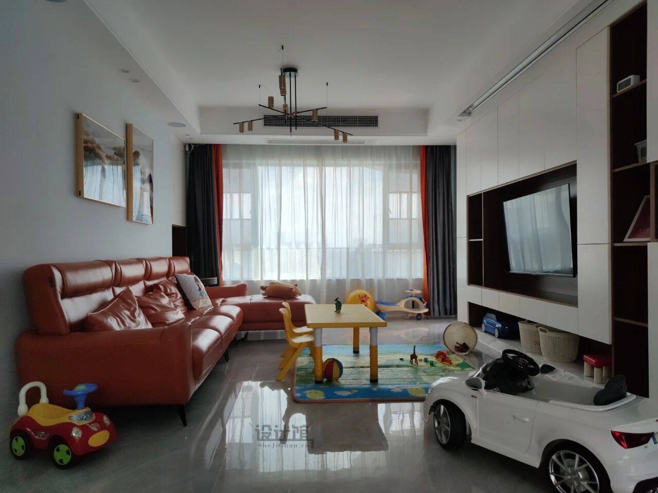 ①孩子的游乐场:孩子学步时,客厅宽敞的中央区域,成了安全的游戏区,不用担心他撞到茶几边角,成了孩子自由玩耍、搭积木的专属领地。
