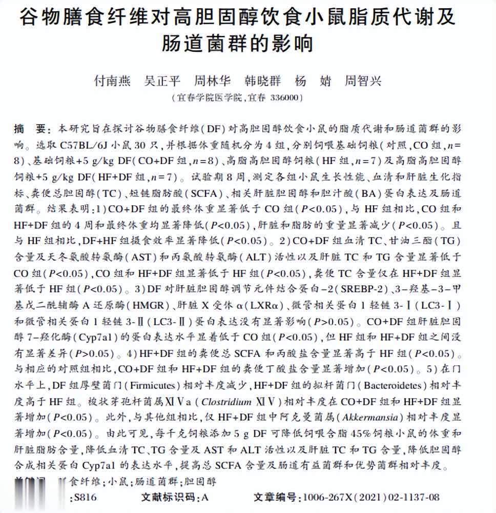 参考资料[1]付南燕配资网站排名第一,谷物膳食纤维对高胆固醇饮食小鼠脂质代谢及 肠道菌群的影响,动物营养学报,2020-11-17