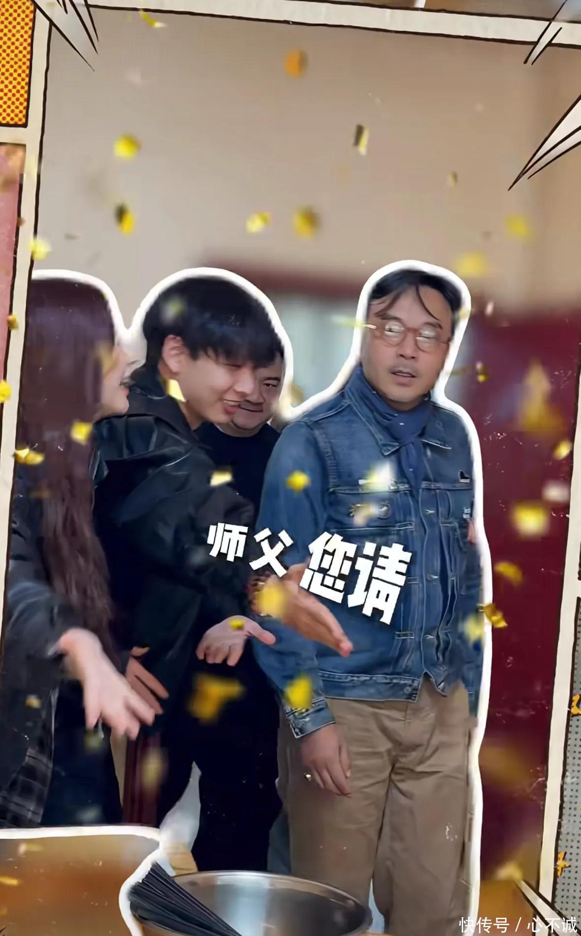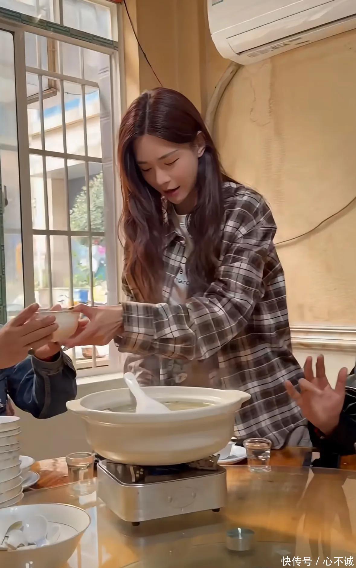 在席间,沈梦辰自然地坐在汪涵身旁,她主动承担起活跃气氛的角色,而在第一道热汤上桌后,她便细致地起身,为汪涵盛汤布菜,态度恭敬而自然,展现出对师父的尊重与关心,汪涵则神态放松,安然享受这份晚辈的照料。