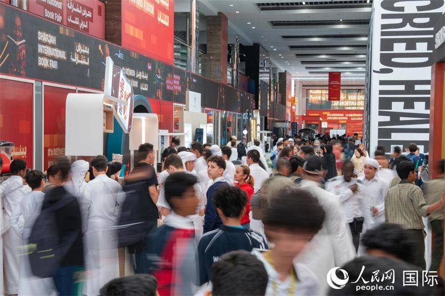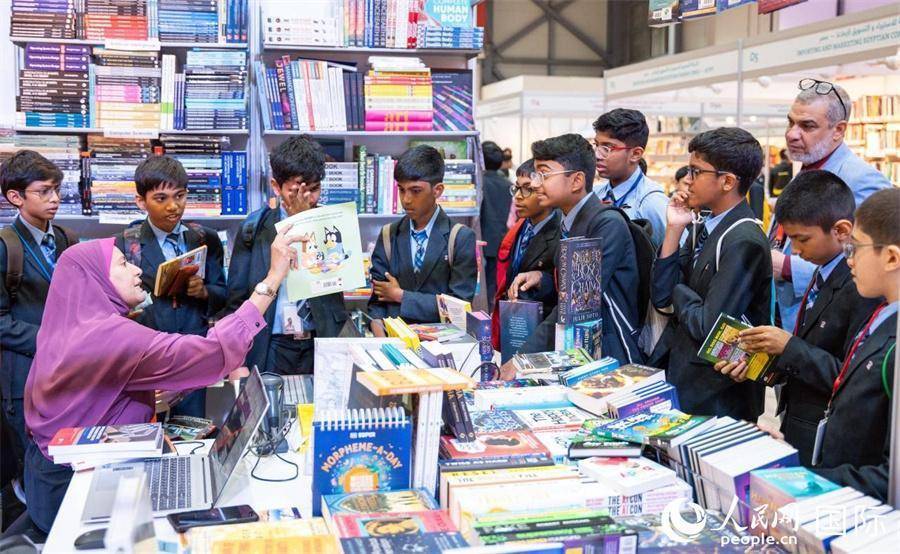 一群学生在了解书籍。人民网 塔里克·易卜拉欣摄人民网迪拜11月10日电 (记者管克江)第四十四届沙迦书展于11月5日-11月16日在阿联酋沙迦酋长国举行。来自110多个国家和地区的1200多家书商参展。